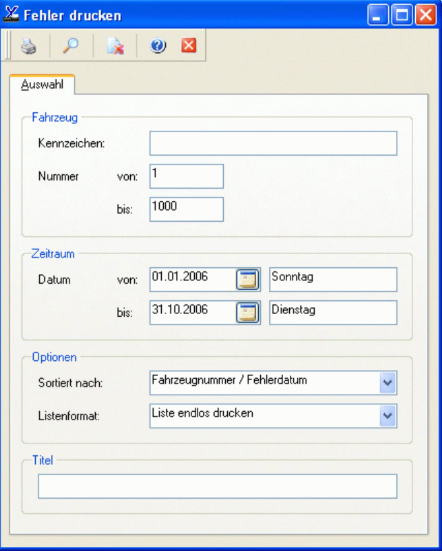 Das Fenster zum Drucken der Fehler hat folgendes Erscheinungsbild: