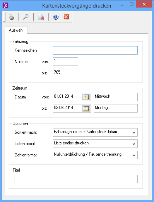 Das Fenster zum Drucken der Kartensteckvorgänge hat folgendes Erscheinungsbild: