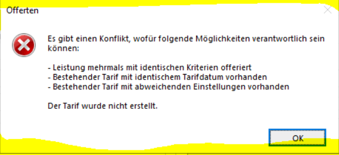 Ein Tarif kann auf einer Offerte nur einen Preis haben.