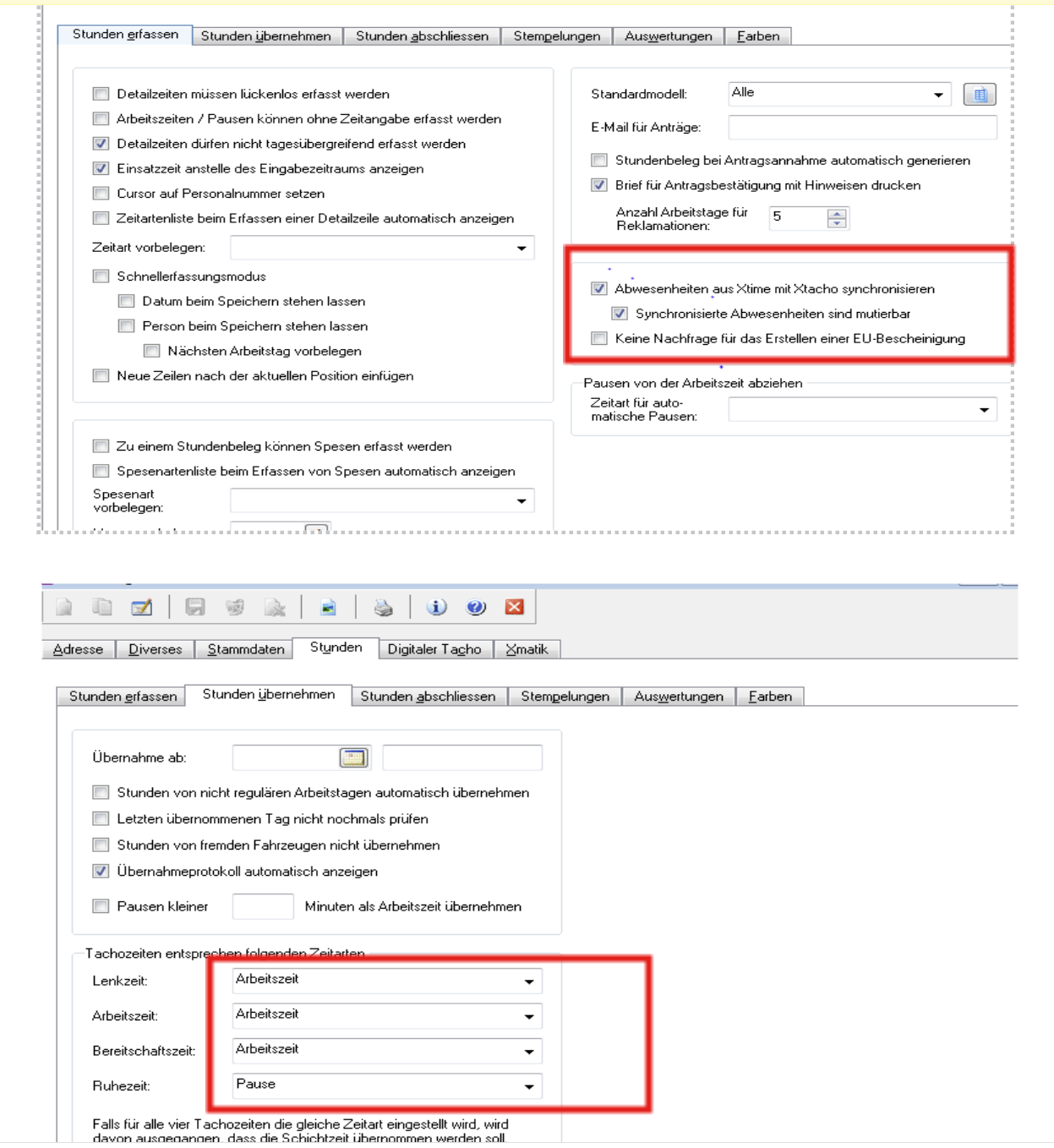 System Einstellungen > Stunden erfassen > Müssen folgende Einstellungen vorgenommen werden
