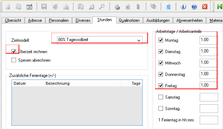 Eigenes Zeitmodell für Teilzeitmitarbeiter (80%) 5 Tage erstellen
