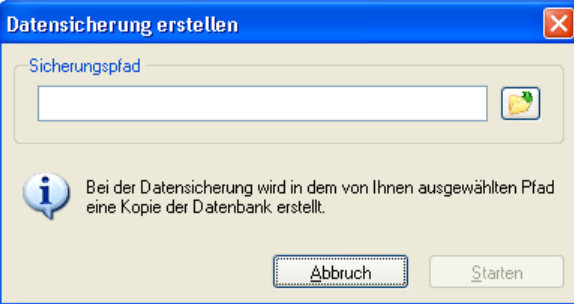 Dieses Programm steht nur bei Einplatzsystemen zur Verfügung. Bei Mehrplatzsystemen muss die Datensicherung serverseitig vorgenommen werden.