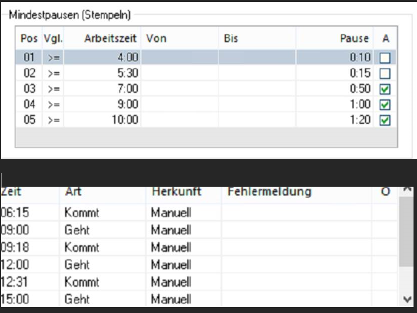 Wenn der Mitarbeiter die Pause aber korrekt macht soll die Pause nicht verändert werden.